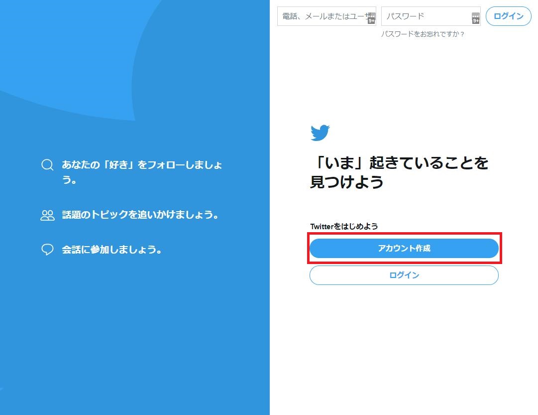 赤枠で囲った「アカウント作成」ボタンをクリックします。