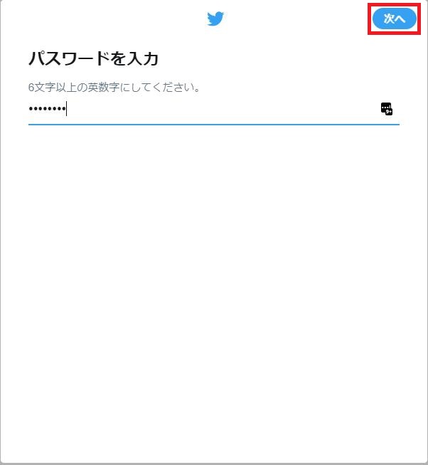 パスワードを設定したら、赤枠で囲った「次へ」ボタンをクリックします。