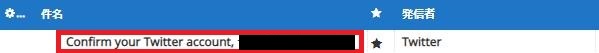 「Confirm your Twitter account」と言う件名でメールが届いています。