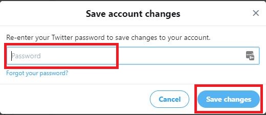 設定したパスワードを記入して、赤枠で囲った「Save changes」ボタンを