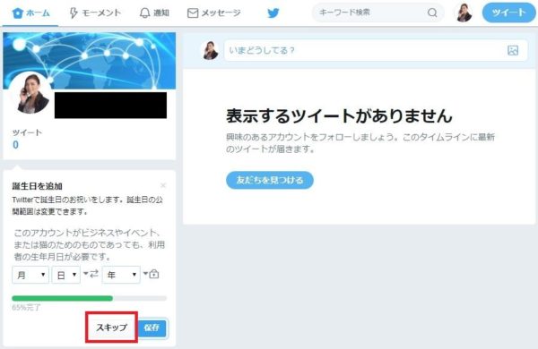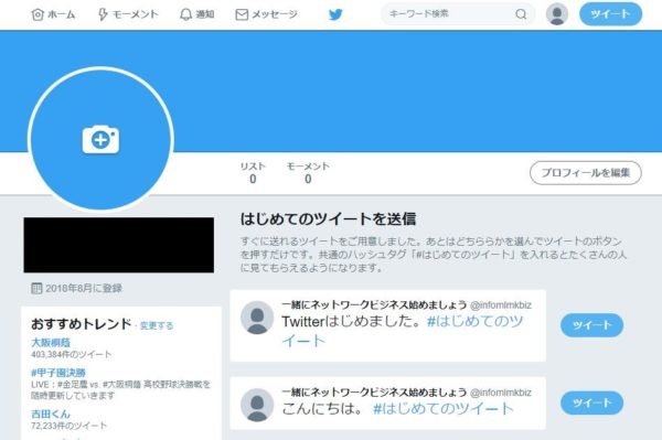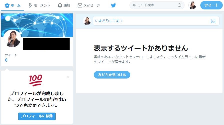 以上でTwitterアカウントの作成とプロフィールの作成は完了です。