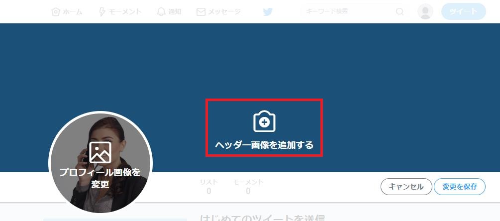 赤枠で囲った「ヘッダー画像を追加する」をクリックします。